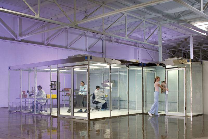 空氣從潔凈室頂部的風(fēng)機過濾單元進(jìn)入,經(jīng)過過濾以層流的方式進(jìn)入工作區(qū)域,保持潔凈室內(nèi)部的正壓強,阻止污染物的入侵。
