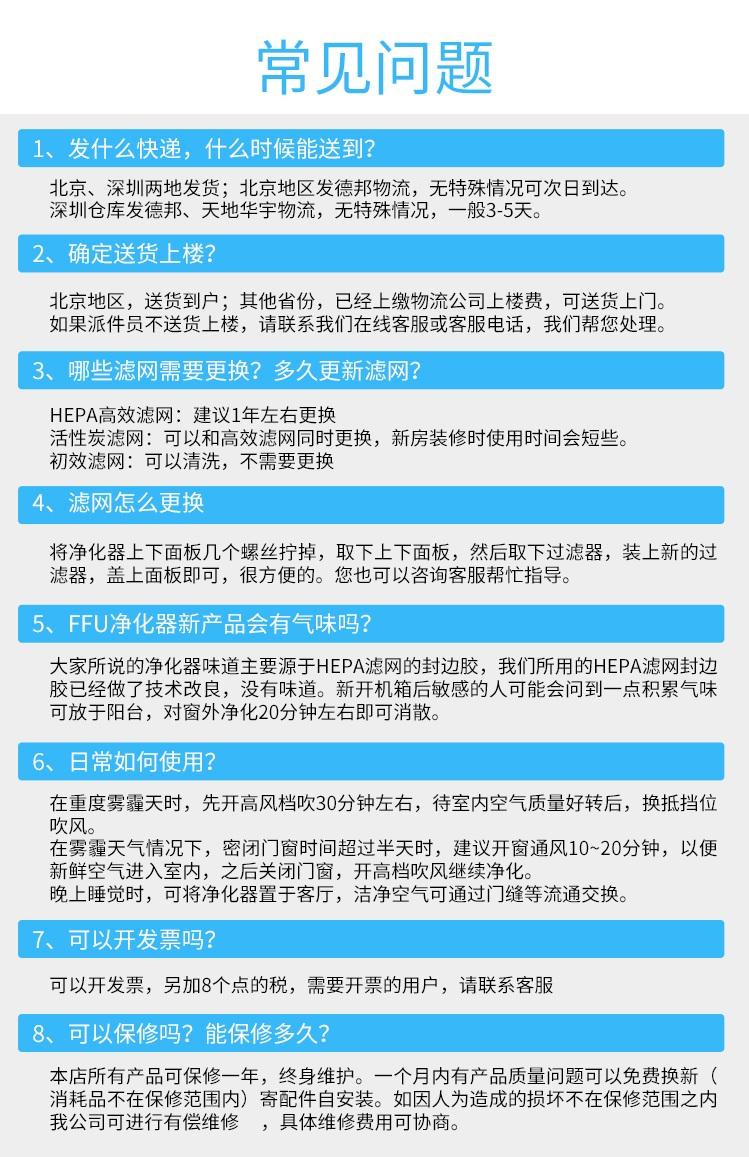 FFU空氣凈化器作為家電的一種,電機(jī)的問(wèn)題,電源的問(wèn)題等等,總會(huì)多多少少有所發(fā)生。而大部分小賣家都是借著這股風(fēng)炒炒單,賣完就結(jié)束了,等您的凈化器出現(xiàn)問(wèn)題,需要找人售后的時(shí)候,對(duì)不起,他們沒(méi)有能力也不會(huì)給您處理任何售后問(wèn)題,至于承諾的三五年售后保障,那不過(guò)是放空炮沒(méi)有任何意義的承諾而已!找大廠家,行業(yè)經(jīng)驗(yàn)長(zhǎng)的,您買的凈化器,不光是買的產(chǎn)品,更多的是買的服務(wù)。